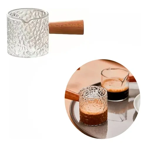 Taza De Leche Vidrio 100ml Jarrita Cafe Mango Madera Mt09050