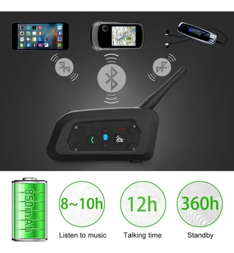 El intercomunicador para casco de motocicleta V6 Plus admite hasta 6 conexiones de conductores, permitiendo una intercomunicación en tiempo real para 2 conductores dentro de un rango efectivo de 800-1200 metros.