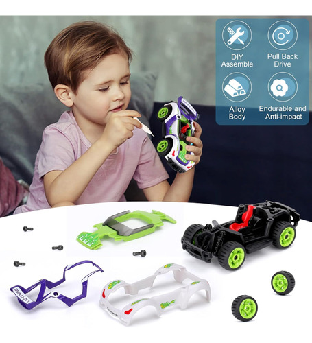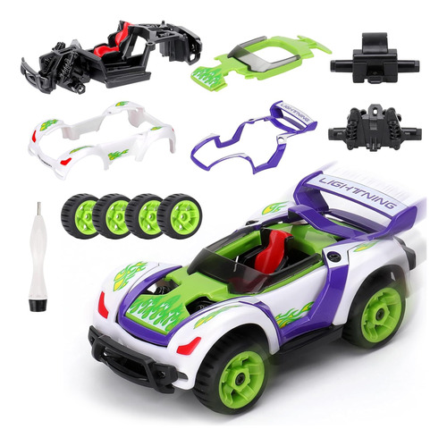 Divertido Auto encastrable para armar y Desarmar con herramienta hexagonal para aflojar y ajustar los Tornillos. Sistema de construcción modular. ¡Simplemente afloje los tornillos con la herramienta hexagonal incluida y cambie las piezas! Mantendrá a tu hijo entretenido durante Horas armando el auto y aprendiendo al mismo tiempo a identificar las partes que lo componen.