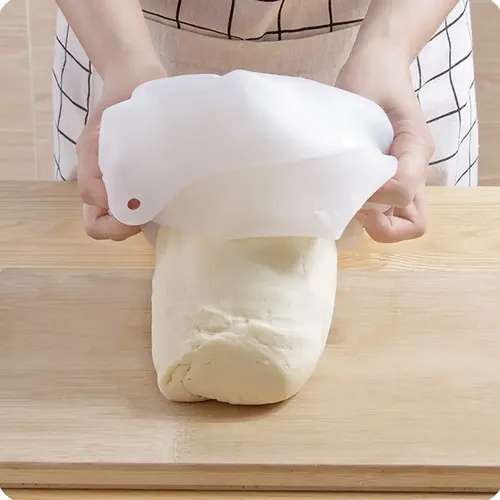 bolsa de amasado de silicona reutilizable para evitar que la harina salte alrededor.