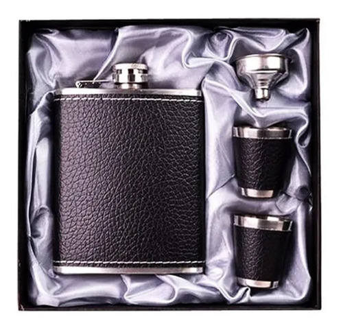Petaca de ecocuero y acero inoxidable para whisky 200cc + 2 shots