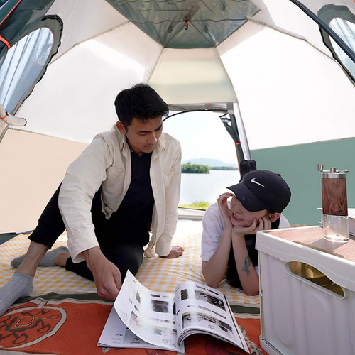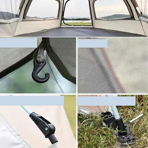Su instalación es sencilla y puede utilizarse en diversos entornos como la playa, el bosque o la montaña. ofrece un espacio amplio y confortable, además de una ventilación sobresaliente para una estancia agradable sin preocupaciones por el calor o la exposición al sol. Fabricada con materiales que resisten el agua y el viento, es adecuada para acampar en distintas condiciones meteorológicas.