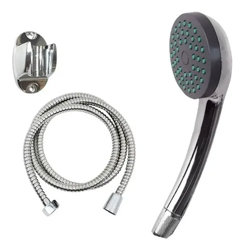 Ducha cromada de mano con soporte y manguera