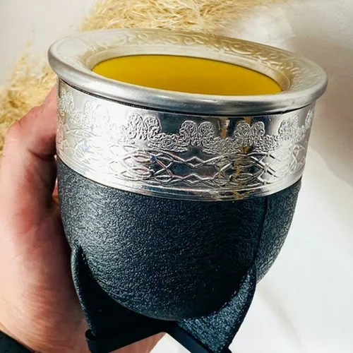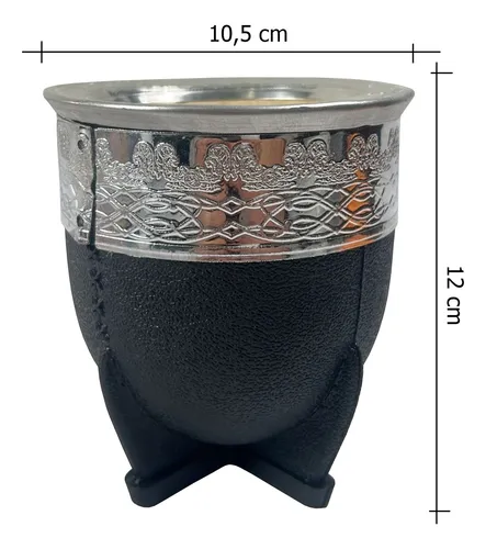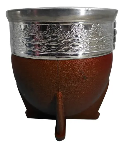 Elaborado con materiales de primera calidad, que logran la armonía perfecta entre su excelente aspecto exterior y un interior con capacidad para la cantidad ideal de yerba En la parte exterior esta fabricado en plastico simil cuero, mientras que la parte interior es de Calabaza. Cuenta con virola grabada con distintos motivos en la parte superior. Base de 4 patas reforzadas