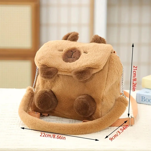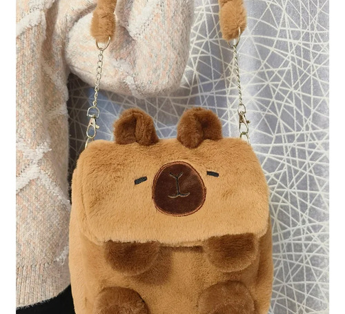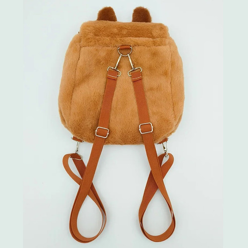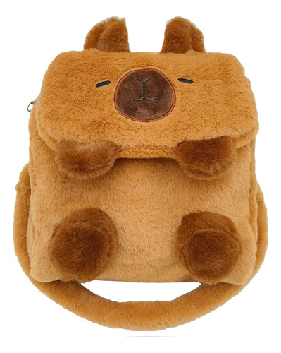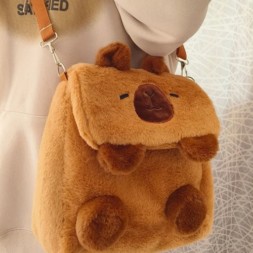 Una “mochila carterita”, inspirada en la forma o temática de capibara, un animal muy popular por su naturaleza amigable y tranquila.