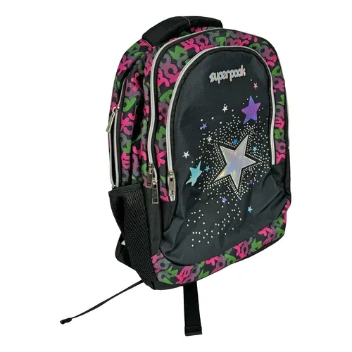 Es ideal para utilizar en el colegio, ya que, cuenta con múltiples bolsillos para almacenar cosas. En la parte superior cuenta con 2 bolsillos grandes, donde dentro hay más bolsillos para subdividir las cosas. En la parte delantera cuenta con otro bolsillo mas y en ambos costados hay 2 almacenamientos más para colocar más objetos, como botellas, bolsas, etc.