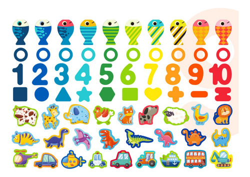 Tabla de madera educativa, que consta de una base de madera encastrable para distintas figuras como animales, numeros, figuras, simbolos, peces, entre otros.