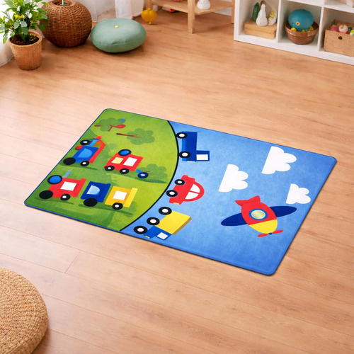 Alfombra diseño de autos y dinos paisaje para niños Aa0493